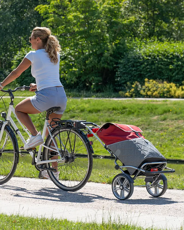 Ein Einkaufstrolley fürs Fahrrad? Ja – und noch viel mehr: Wenn Sie steigende Bordsteinkanten, enge Fahrradwege oder einen vollen Gepäckträger kennen, dann macht unser System den Unterschied. Der Shopper® wird zur cleveren Fahrrad-Anhängerlösung, ohne dass Sie auf Flexibilität verzichten müssen.